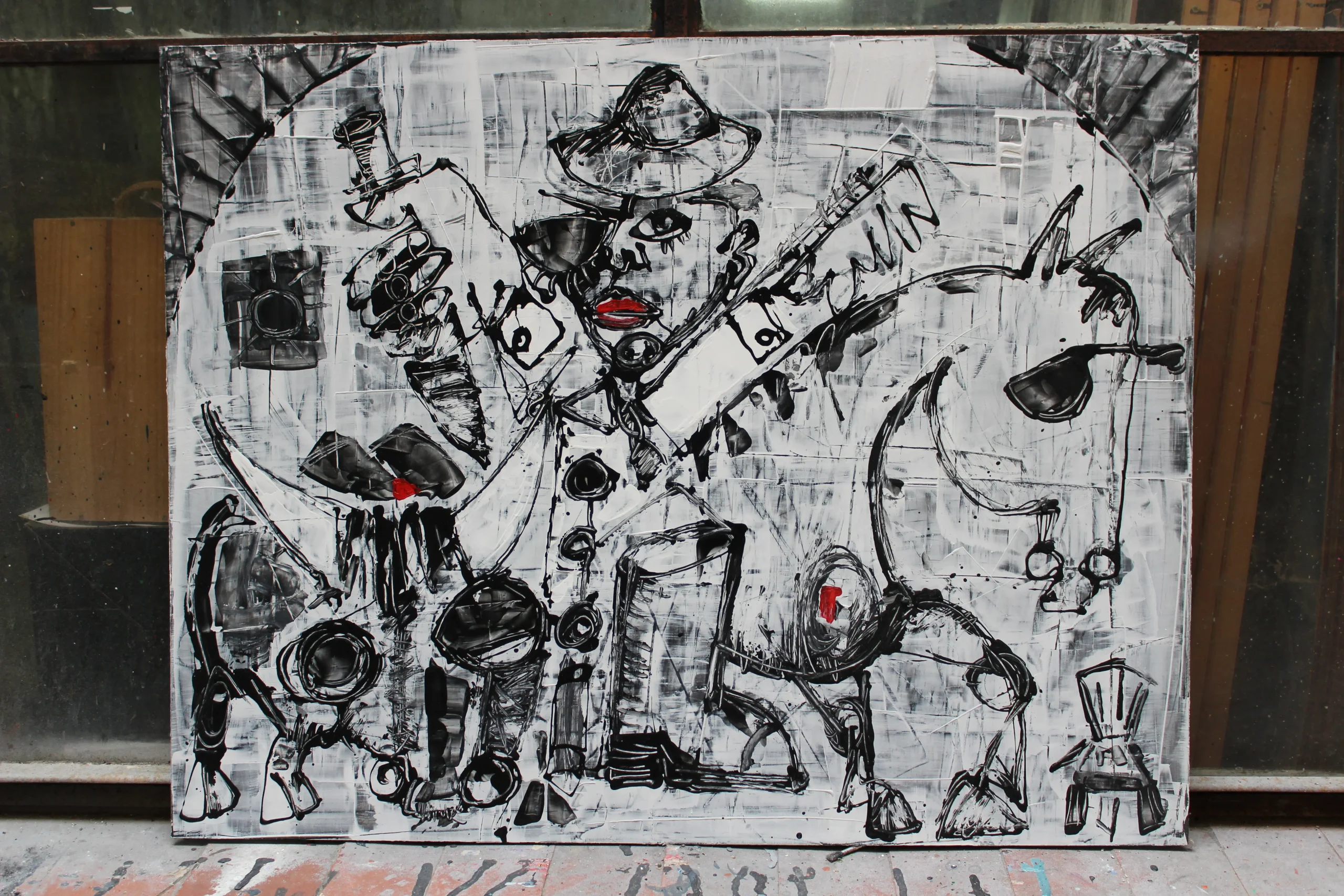 El trazo negro, incisivo y gestual, se impone sobre una superficie dominada por blancos y grises, mientras acentos cromáticos mínimos intensifican la carga emocional de la obra. Desde un lenguaje figurativo–abstracto, El Picador remite a la confrontación, al ritual y a la violencia simbólica, proponiendo una lectura abierta donde la imagen se activa en la mirada del espectador.